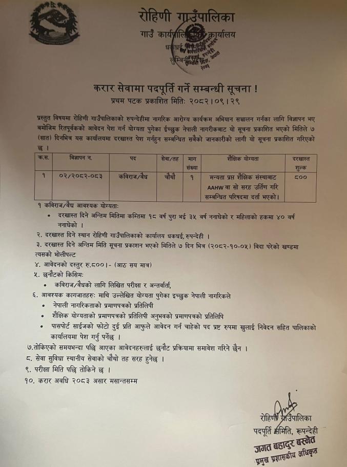 Home » करार सेवामा पदपूर्ति गर्ने सम्बन्धी सूचना !