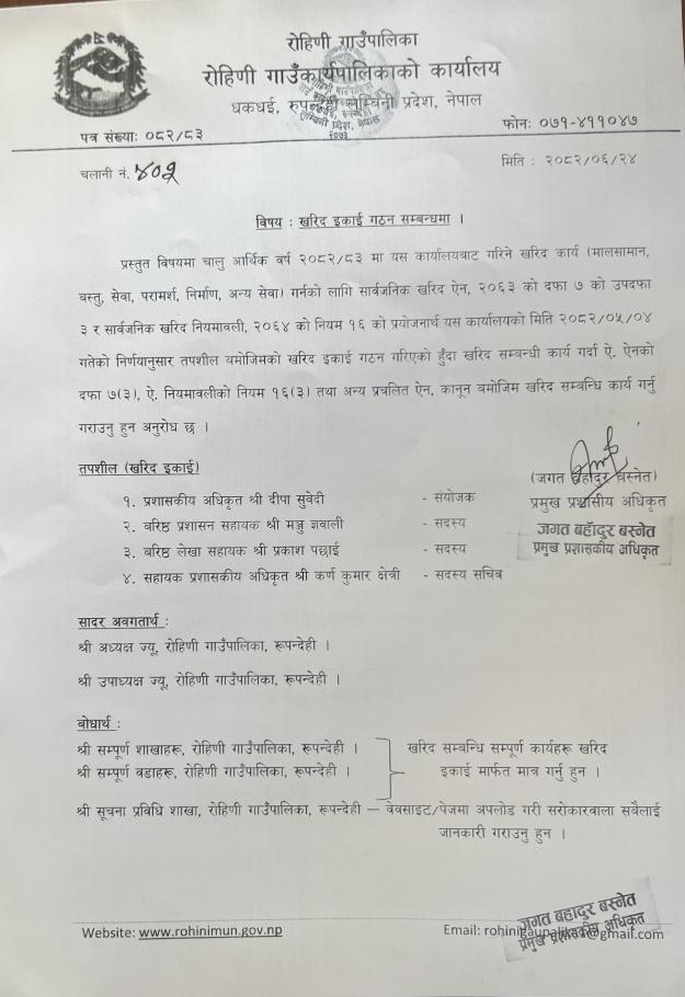 Home » खरिद इकाई गठन सम्बन्धमा।