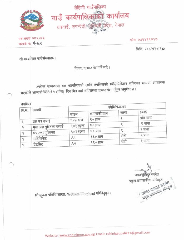 दर भाउ पेश गर्ने सम्बन्धी सूचना।