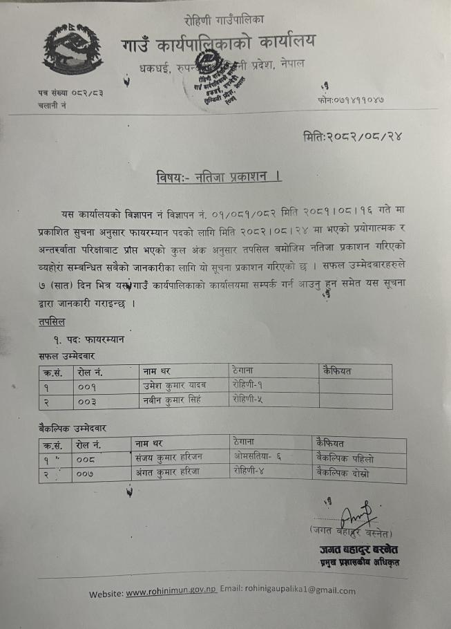 नतिजा प्रकाशन सम्बन्धमा !