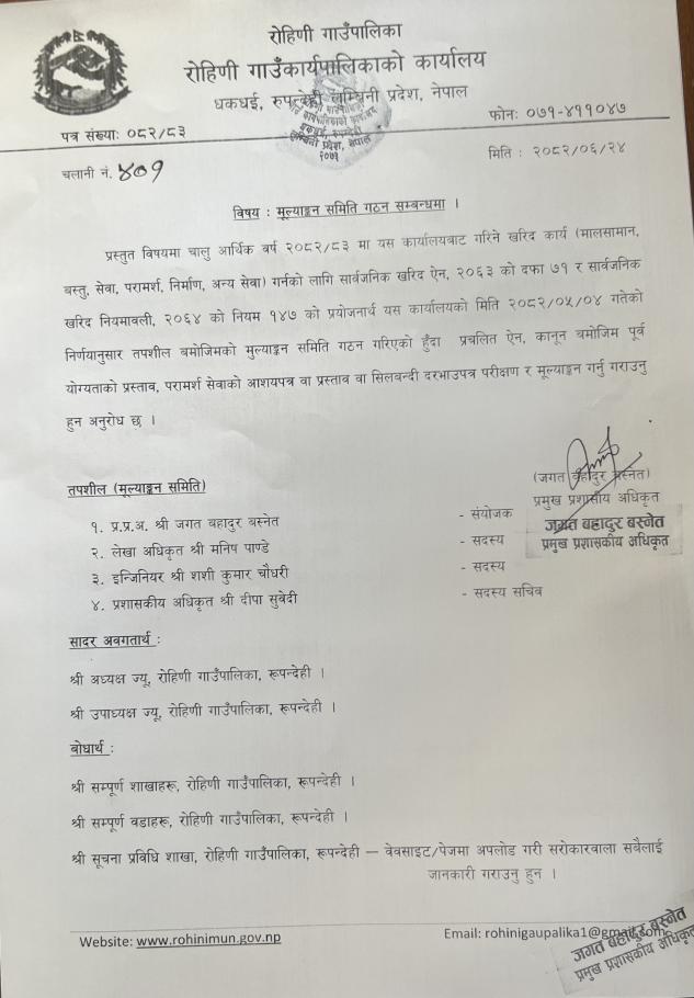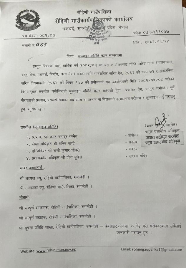 मूल्याङ्कन समिति गठन सम्बन्धमा ।
