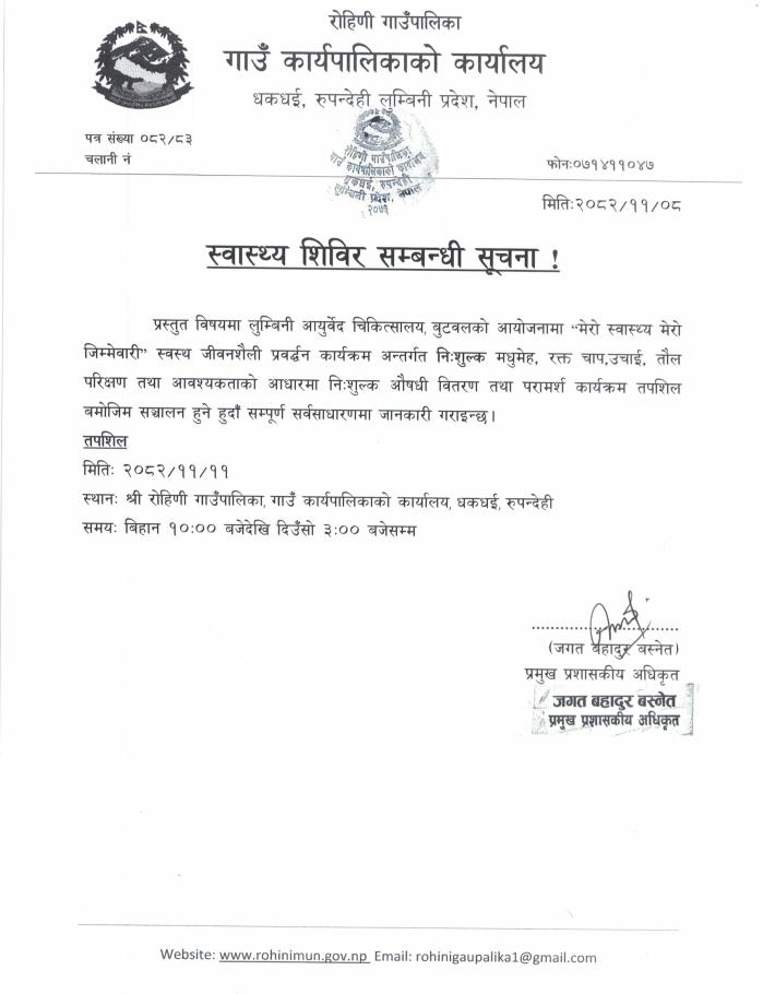Home » स्वास्थ्य शिविर सम्बन्धी सूचना !