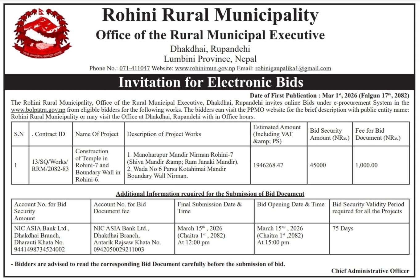 सार्वजनिक खरिद/बोलपत्र सूचना