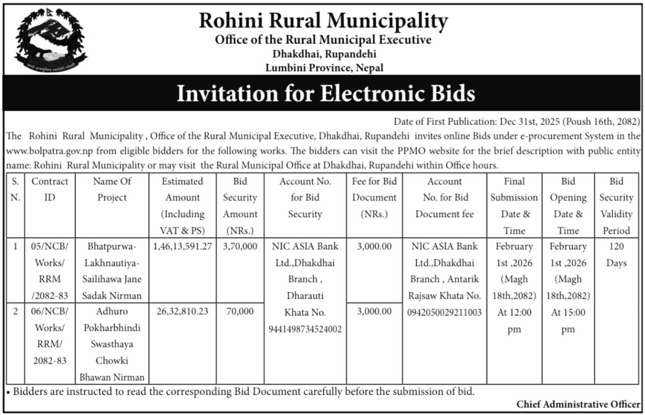 सार्वजनिक खरिद/बोलपत्र सूचना