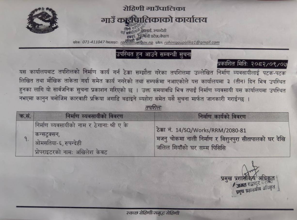 उपस्थिति हुने आउने सम्बन्धि सुचना