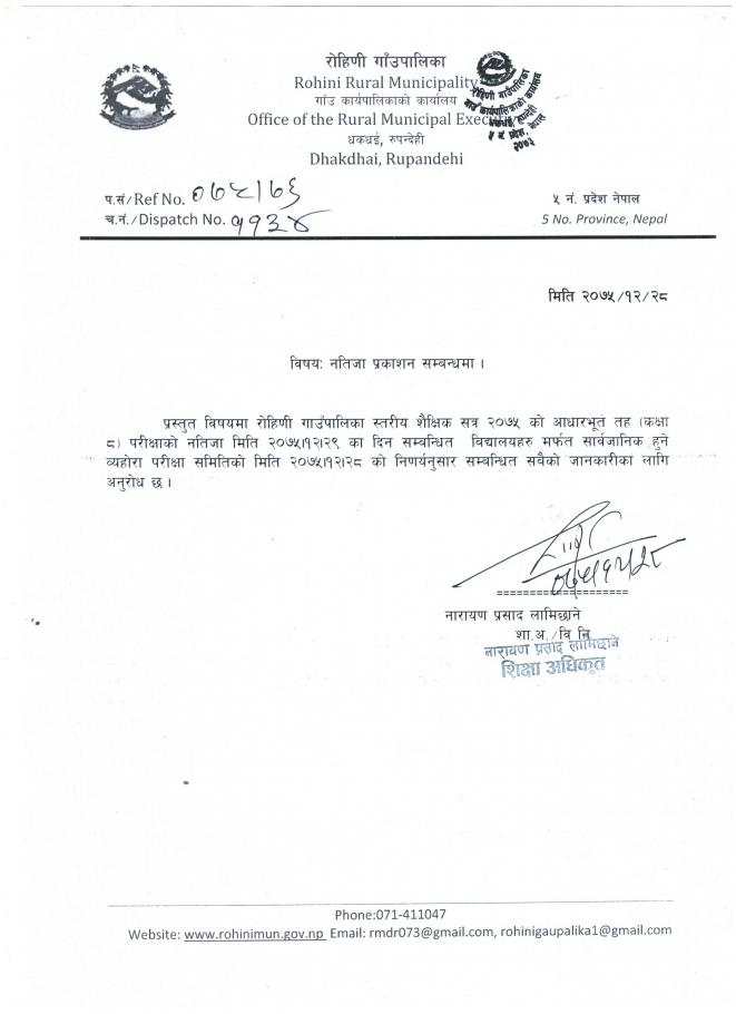 कक्षा ८ नतिजा सम्बन्धि सूचना