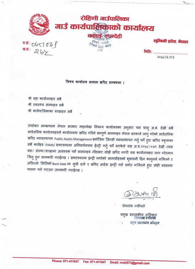 Home » कार्यालयको सामान खरिद सम्बन्धमा ।