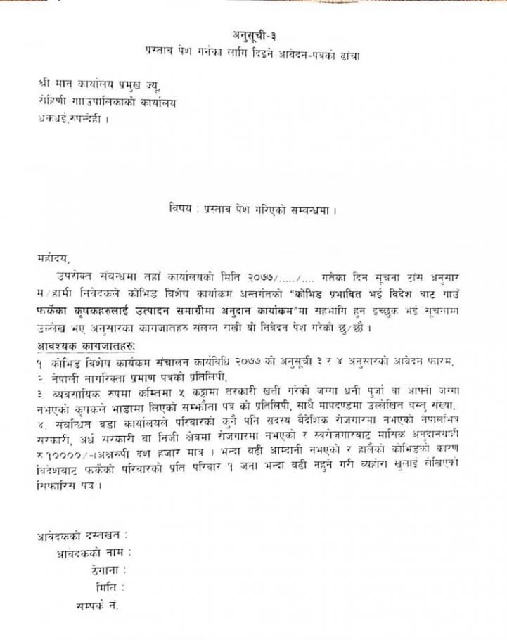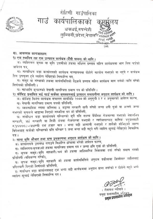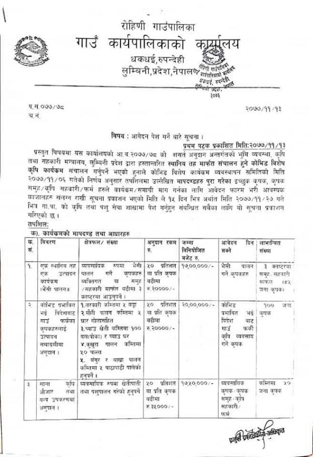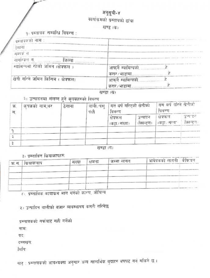 कृसक/कृसक समुह/कृषि सहकारी हरु लाई प्रस्ताव पेश गर्नको लागि सूचना । साथै सुचनाकाे आबेदन फारम सबै वडा कार्यलय /कृषि /पशु शाखाबाट पनि प्राप्त गर्न सकिने ब्यहाेरा जानकारी गराईन्छ ।