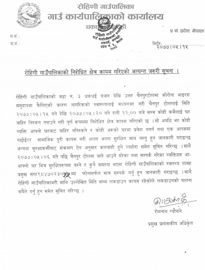 निशेधित क्षेत्र कायम गरिएको अत्यन्तै जरुरी सूचना !