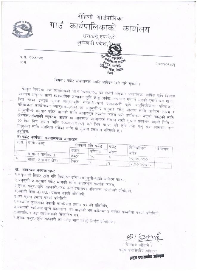 Home » पकेट संचालनको लागि आबेदन दिने बारे सूचना