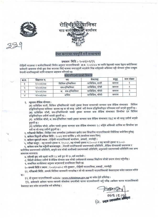 पदपूर्ति सम्बन्धमा अत्यन्त जरुरी