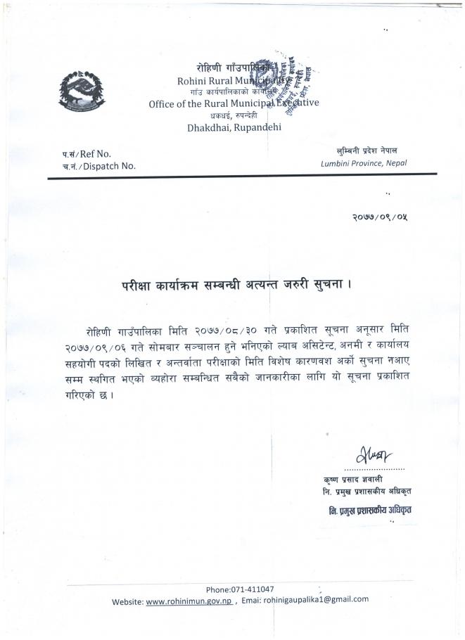 परीक्षा कार्याक्रम सम्बन्धी अत्यन्त जरुरी सुचना ।