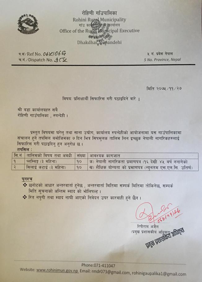 प्रशिक्षार्थी सिफारिस गरी पठाइदिने सुचना