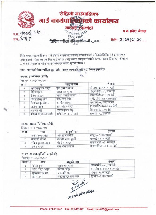 Home » लिखित परीक्षाको नतिजा प्रकाशन तथा अन्तरबार्ता सम्बन्धमा !!!!