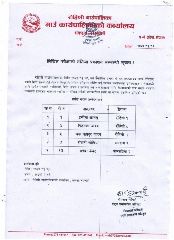 ल्याब असिटेन्टको लिखित परीक्षाको नतिजा प्रकाशन सम्बन्धी सूचना !