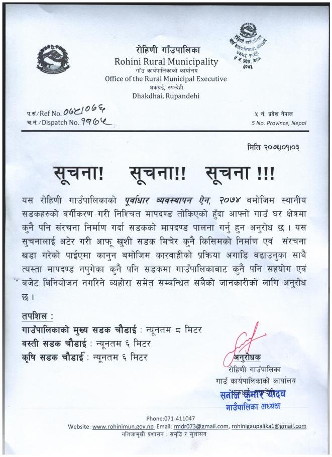 Home » सडक मापदण्ड सम्बन्धी सूचना