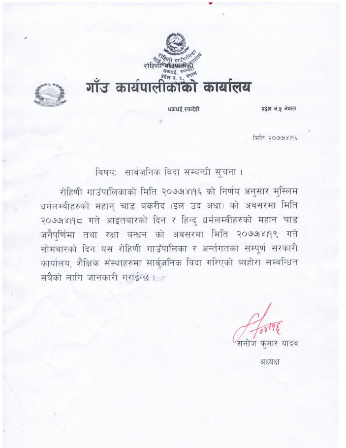 सार्वजनिक विदा सम्बन्धी सूचना !!