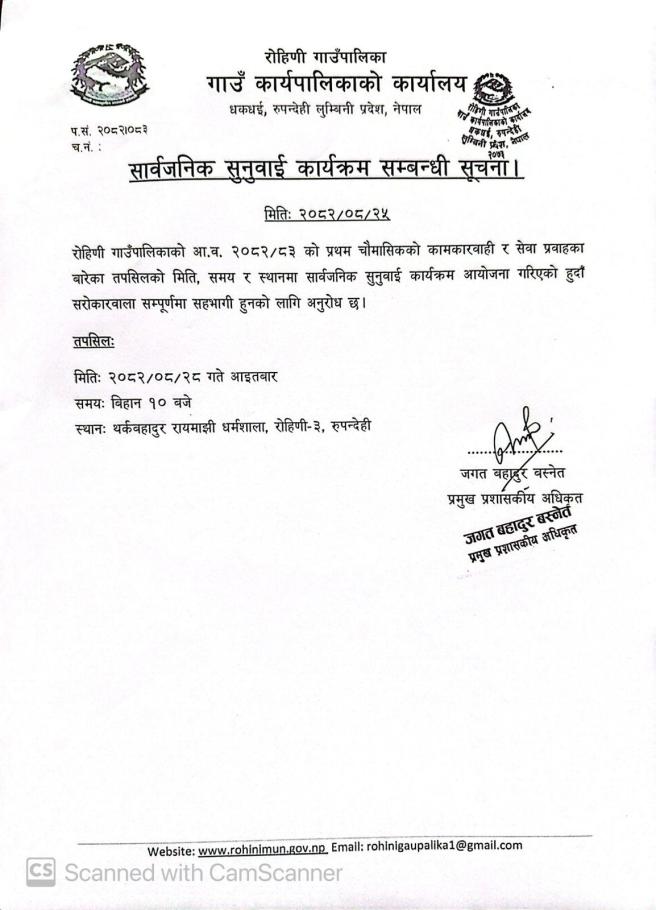 सार्वजनिक सुनुवाई कार्यक्रम को सूचना !