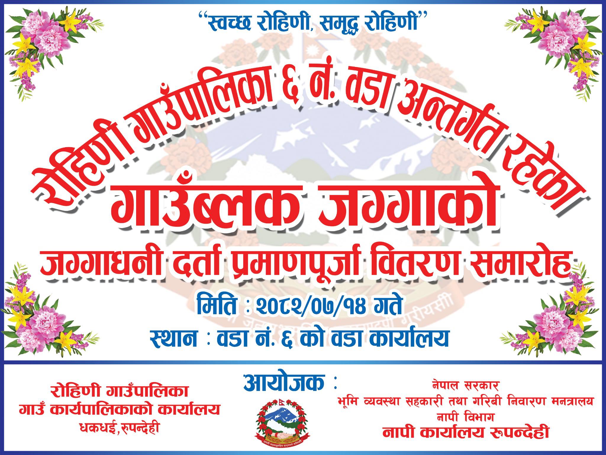 रोहिणी गाउँपालिका वडा नम्बर ६ मा लालपूर्जा वितरण